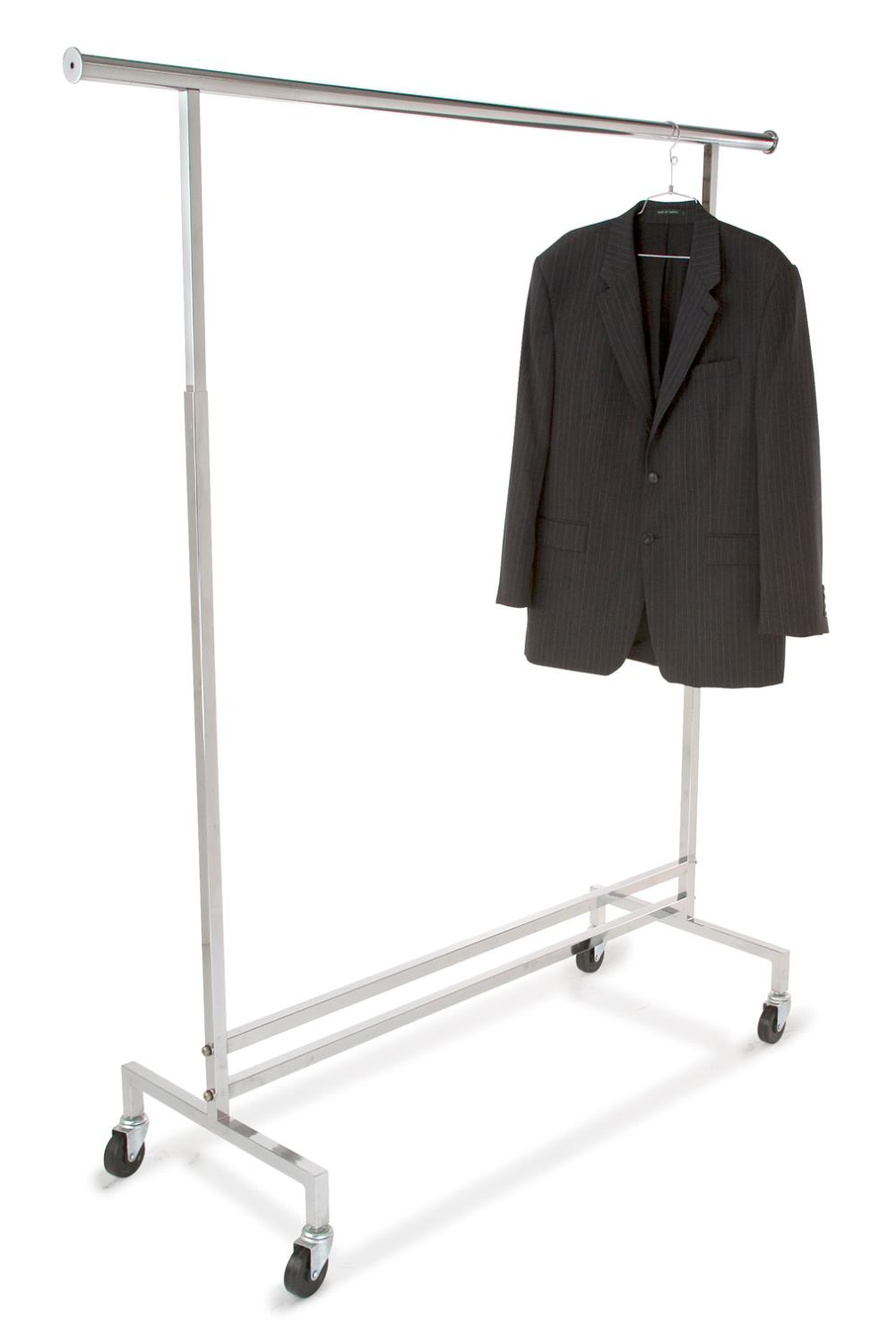 SINGLE HANG RAIL ROLLING RACK-SQUARE TUBING - POLISHED CHROME