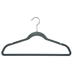 LADIES 17 3/8" WIDE GREY SLIMLINE VELVET FLOCKED SUIT HANGER WITH NOTCHES -